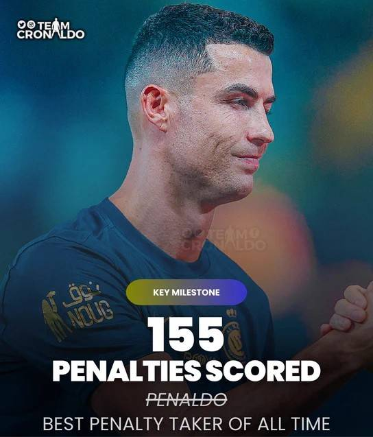生涯共打进155粒点球!C罗团队发文称其是史上最伟大点球手