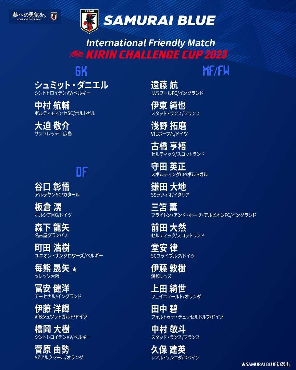 日本国家队大名单公布:三笘薰领衔 仅4人效力本国联赛