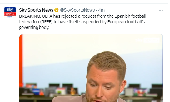 天空体育:欧足联已拒绝西足协诉求 后者抗议政府干涉卢比莱亚斯一事