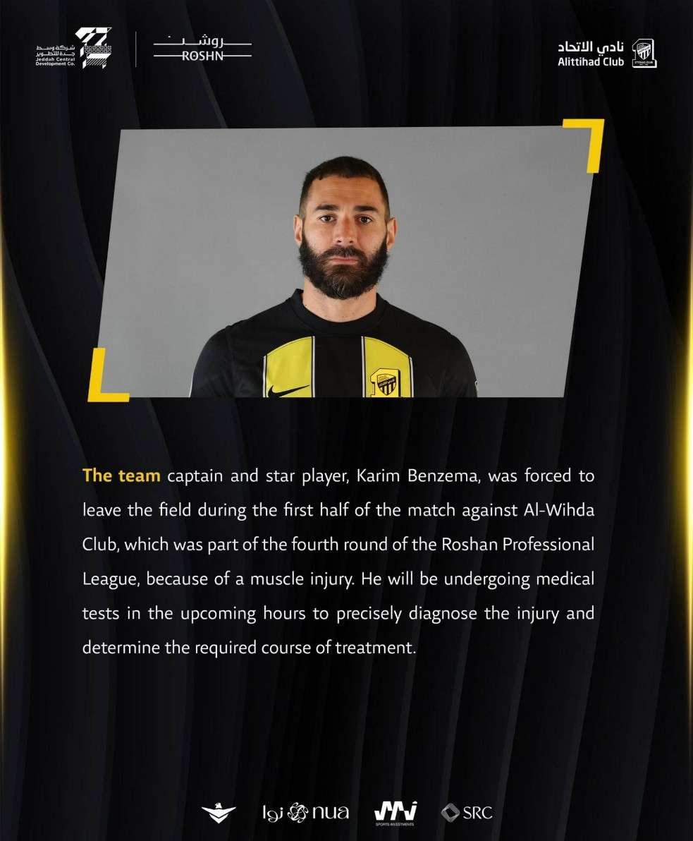 本泽马因伤下场 未来数小时内将接受检查