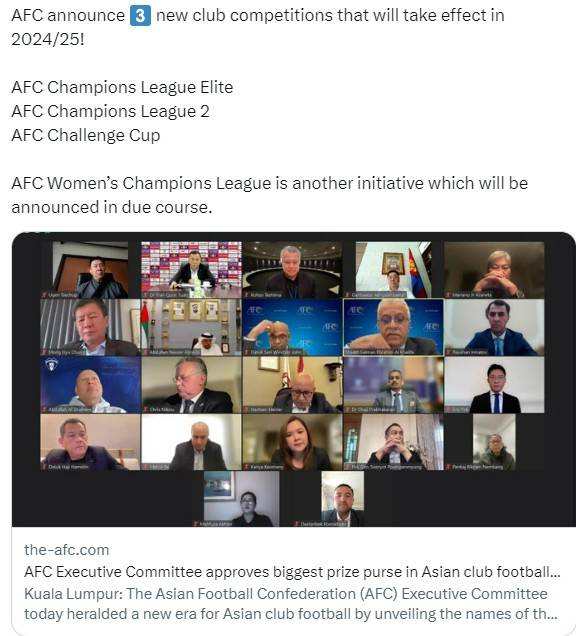 官方:亚冠下赛季起将更名亚洲冠军联赛精英赛 并开设三级联赛