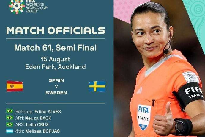 女足世界杯半决赛裁判选派:南美裁判组执法西班牙vs瑞典