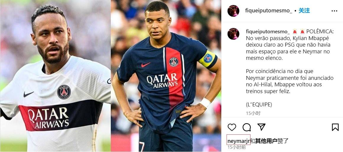 内马尔点赞ins 暗指姆巴佩早就不想和他同队