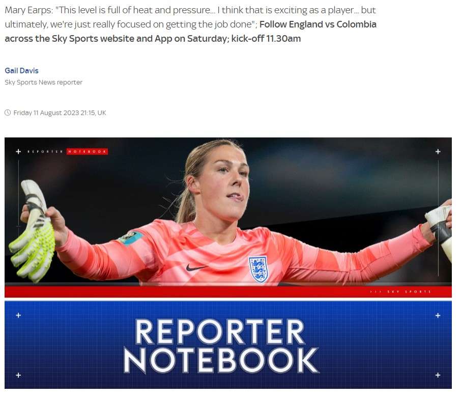 英格兰女足门神:进攻端会找到对付哥伦比亚的办法 将压力转化为动力