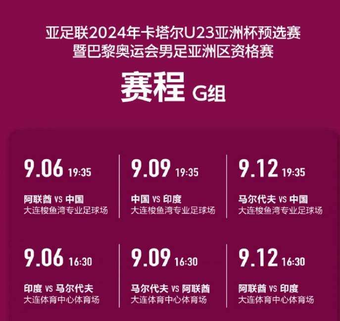 奥预赛赛程出炉:中国承办G组比赛 9月6日国奥vs阿联酋在大连进