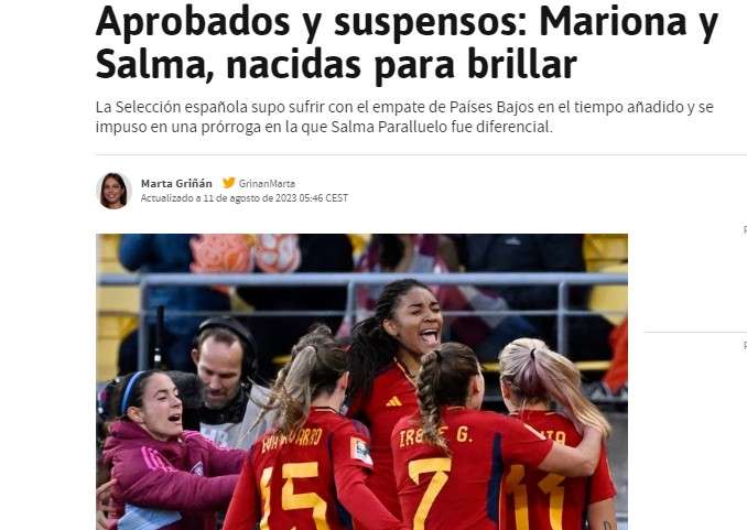 阿斯报点评西班牙球员表现:卡尔登蒂全场最佳 帕拉卢埃洛是赢球的关