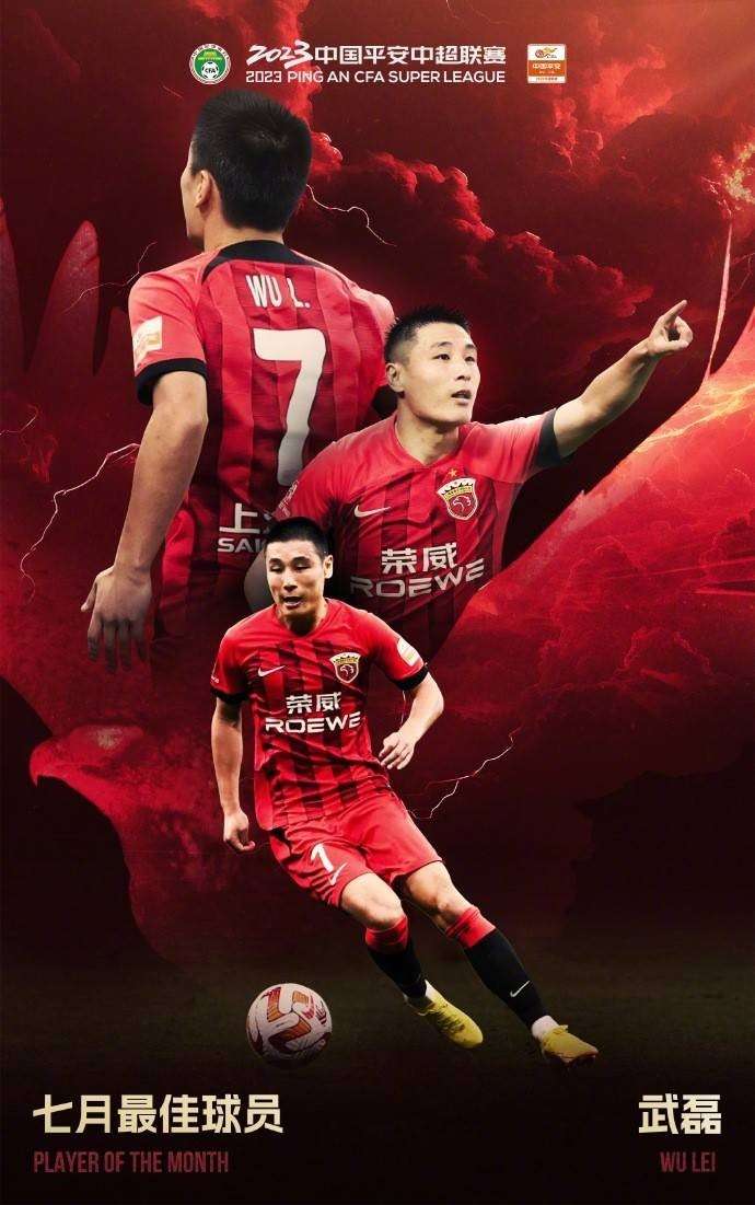 连续4轮联赛破门!中超官方:武磊当选7月最佳球员