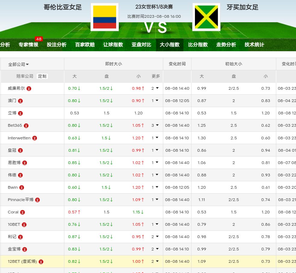 这个大小球盘口降盘有点过分引导小球。大1.75没肉了,反而打出希