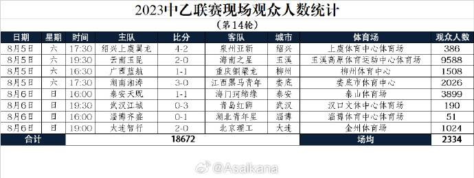 中乙第14轮现场观众人数统计:云南玉昆vs海南之星9588人