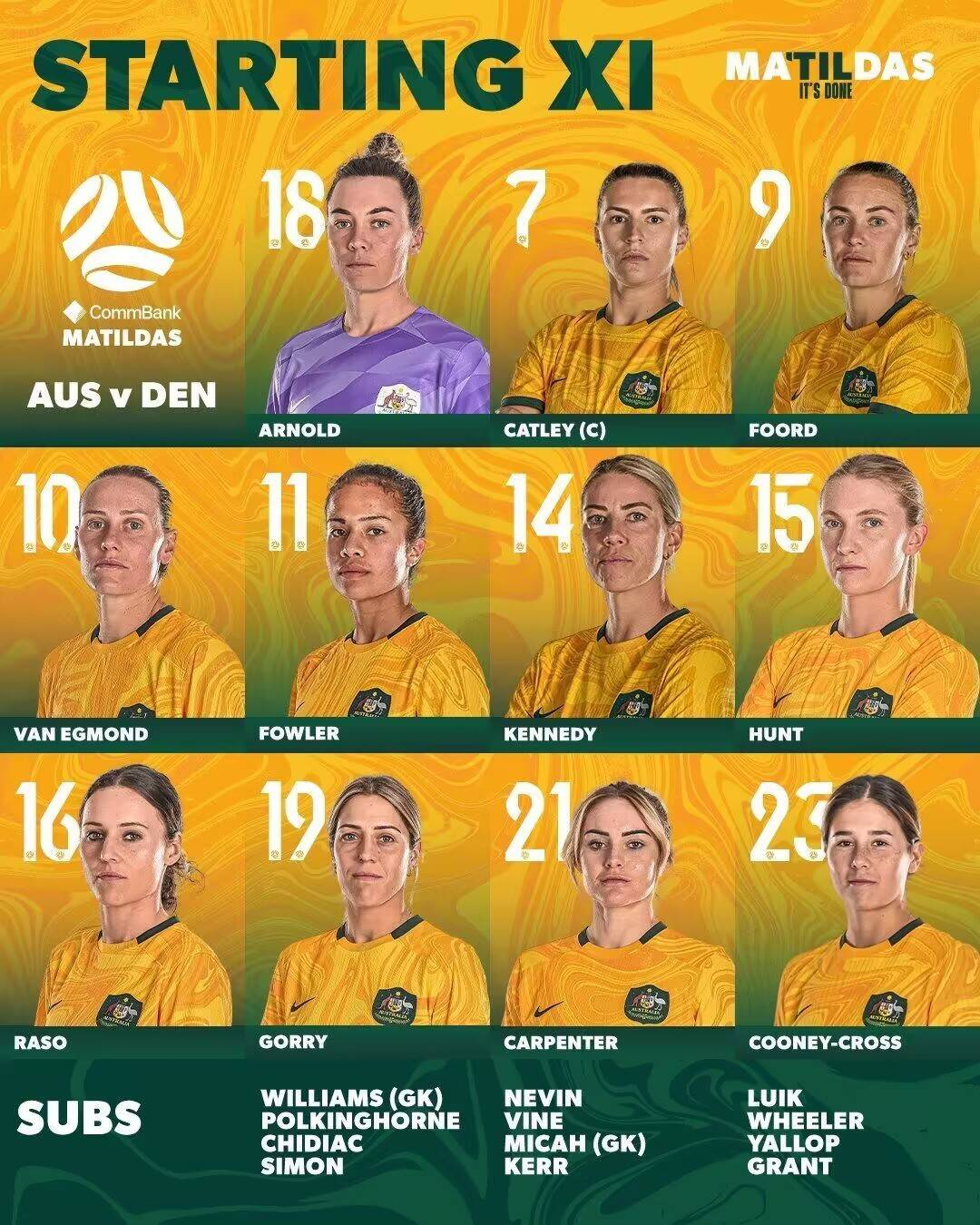 澳大利亚vs丹麦首发:凯特琳、福勒先发 旺斯高出战