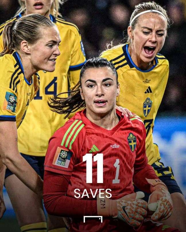 淘汰美国的绝对功臣!瑞典门将单场11次扑救创本届女足世界杯纪录