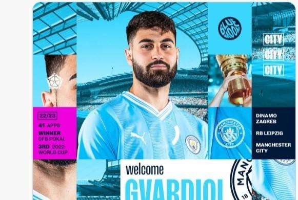 足坛最贵后卫!📸曼城官方:格瓦迪奥尔加盟球队 签约5年