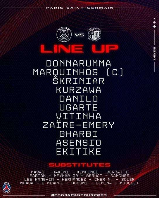 大阪樱花vs巴黎首发:阿森西奥领衔 内马尔替补