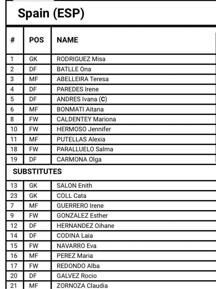 西班牙女足vs赞比亚女足首发:邦马蒂先发 普特拉斯出战