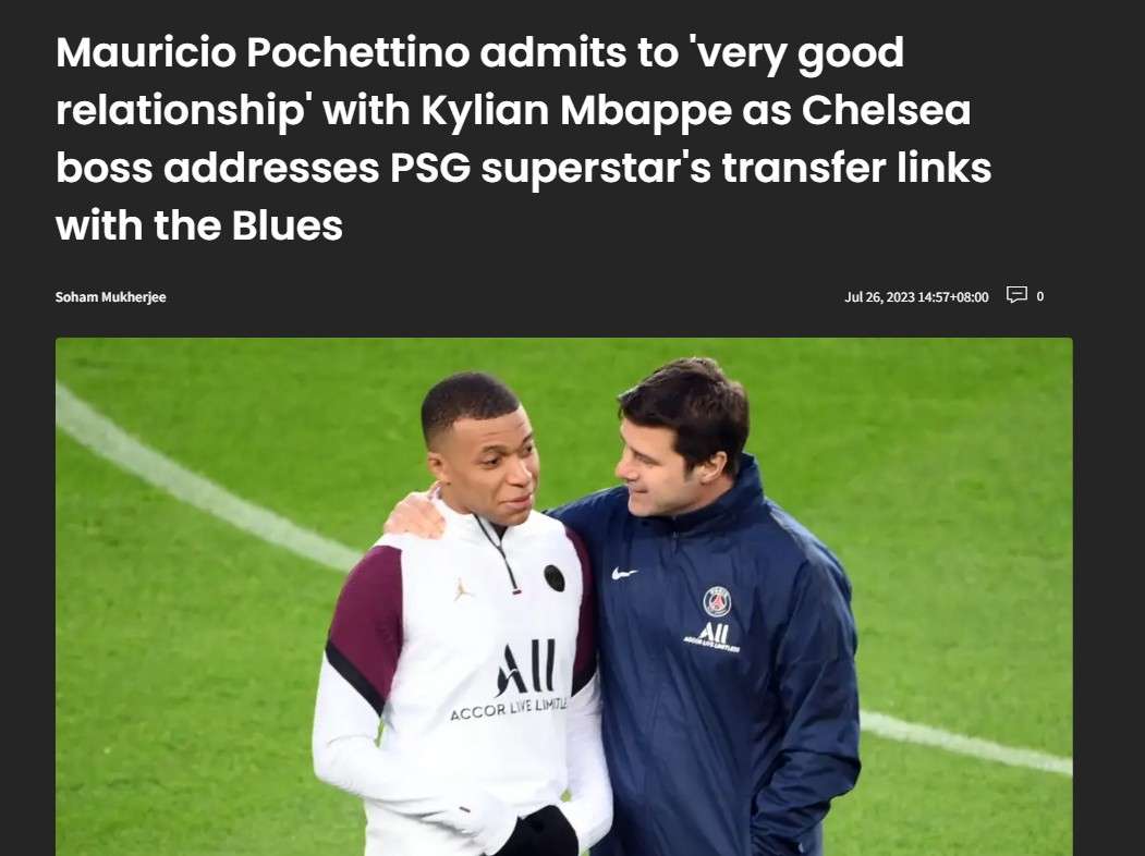 波切蒂诺:我跟姆巴佩的关系很好 希望他能跟巴黎找到解决方案