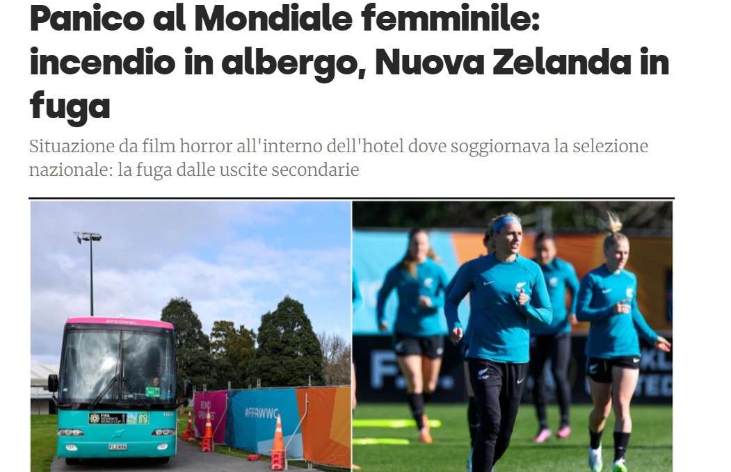 意媒:新西兰女足下榻酒店发生火灾 球员到附近的一家餐馆避难