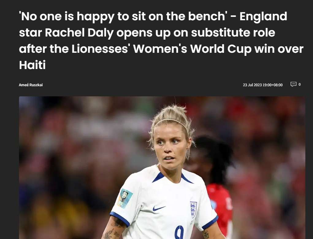 英格兰女足前锋:没有人甘心当替补 但我会尊重主帅的决定