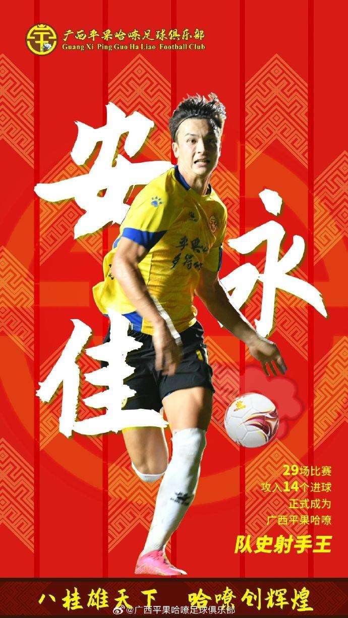 广西平果哈嘹官方:安永佳正式加冕队史射手王!