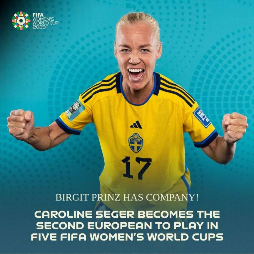 女足老将卡罗琳成为首位参加五届世界杯的瑞典球员!
