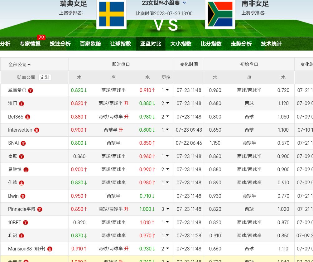 女足世界杯杀人的不是初盘,是滚球盘。落后的一方没球,追必死,大球