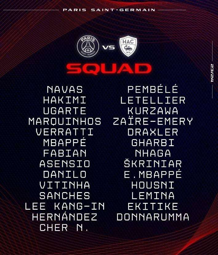巴黎战勒阿弗尔大名单:姆巴佩领衔 新援埃尔南德斯、李刚仁在列