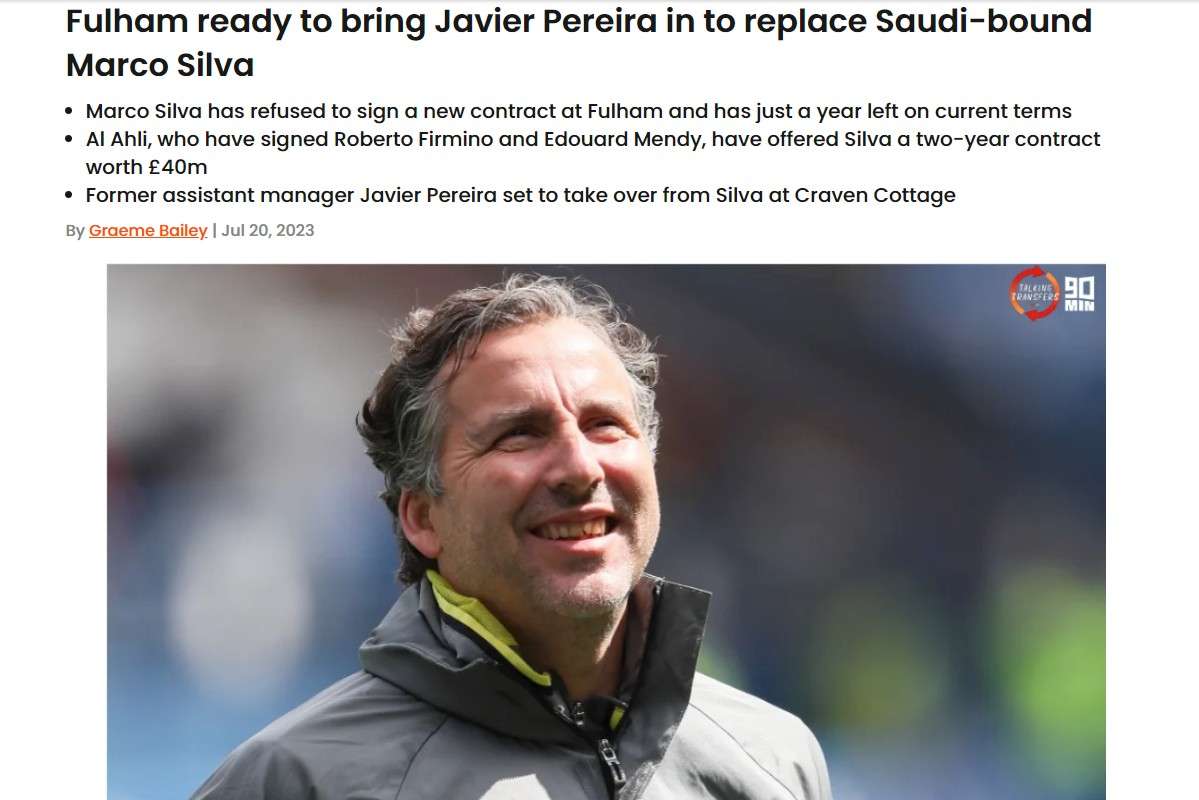 英媒:富勒姆考虑聘请上海海港主帅执教