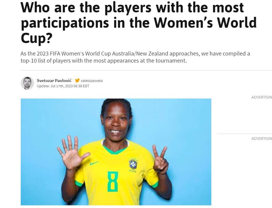 参加女足世界杯次数最多的10名球员:美国队占6席位 玛塔并列第三