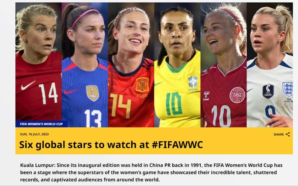 亚足联盘点女足世界杯六大巨星:中国队同组对手丹麦、英格兰各1将入