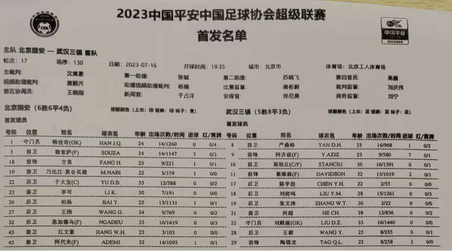 国安vs三镇首发:两队均三外援出战 于大宝、陶强龙先发