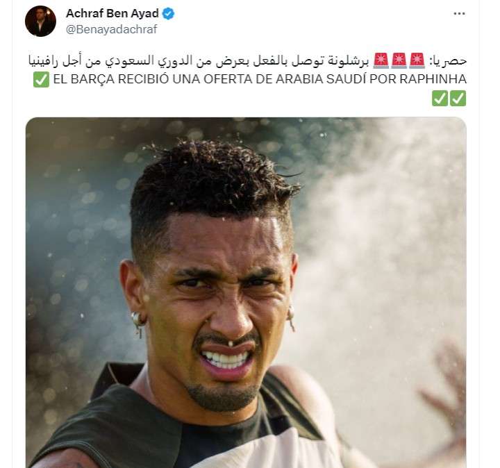 记者:沙特球队开出三倍工资引诱巴萨边锋拉菲尼亚