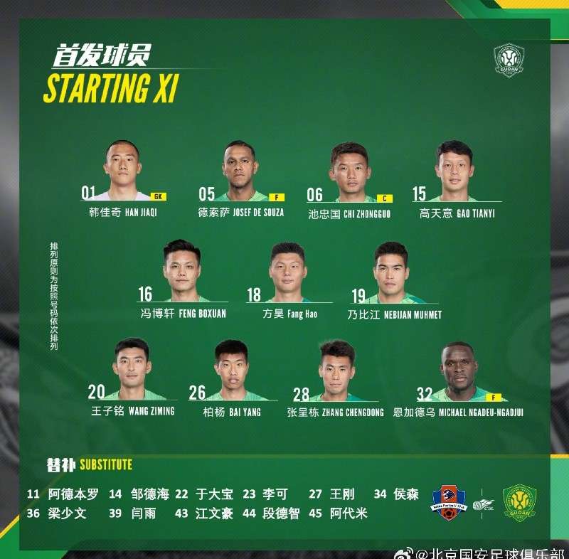 梅州vs国安首发:四外援PK双外援 韩佳奇回归 方昊先发
