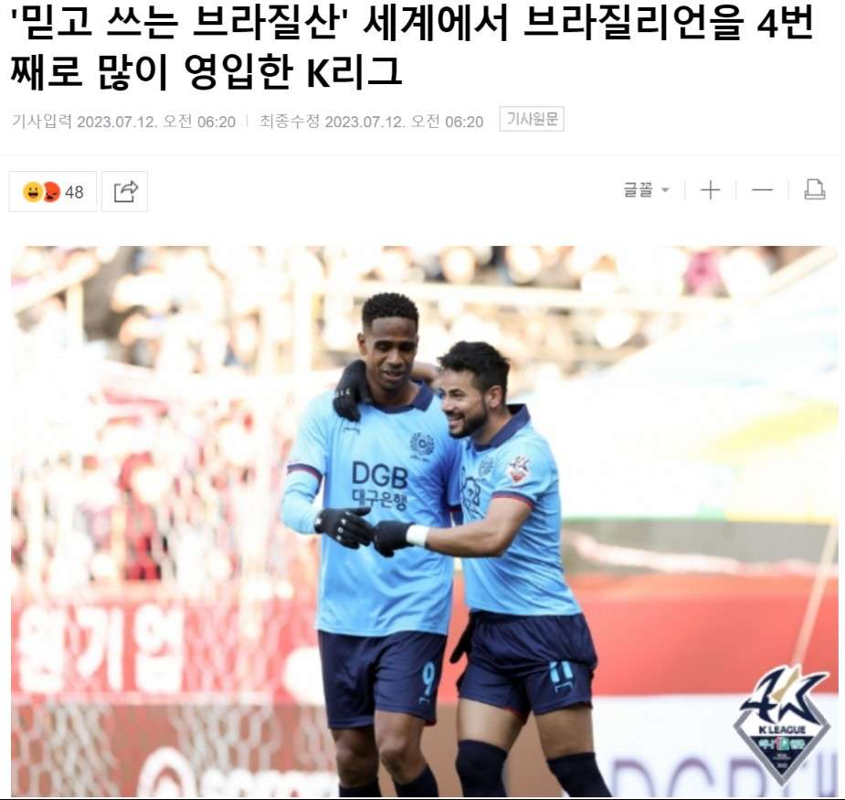 韩K联赛巴西外援占比近6成 桑巴元素影响多支球队