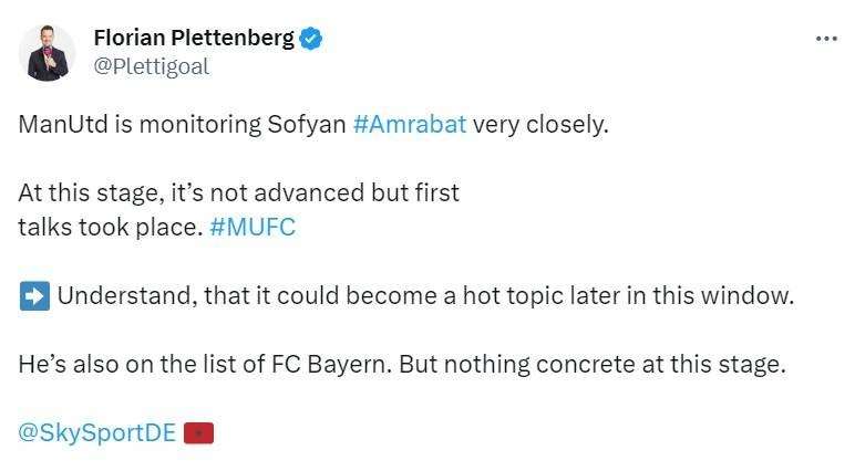 两大豪门盯上紫百合中场阿姆拉巴特 曼联已和他初次对话