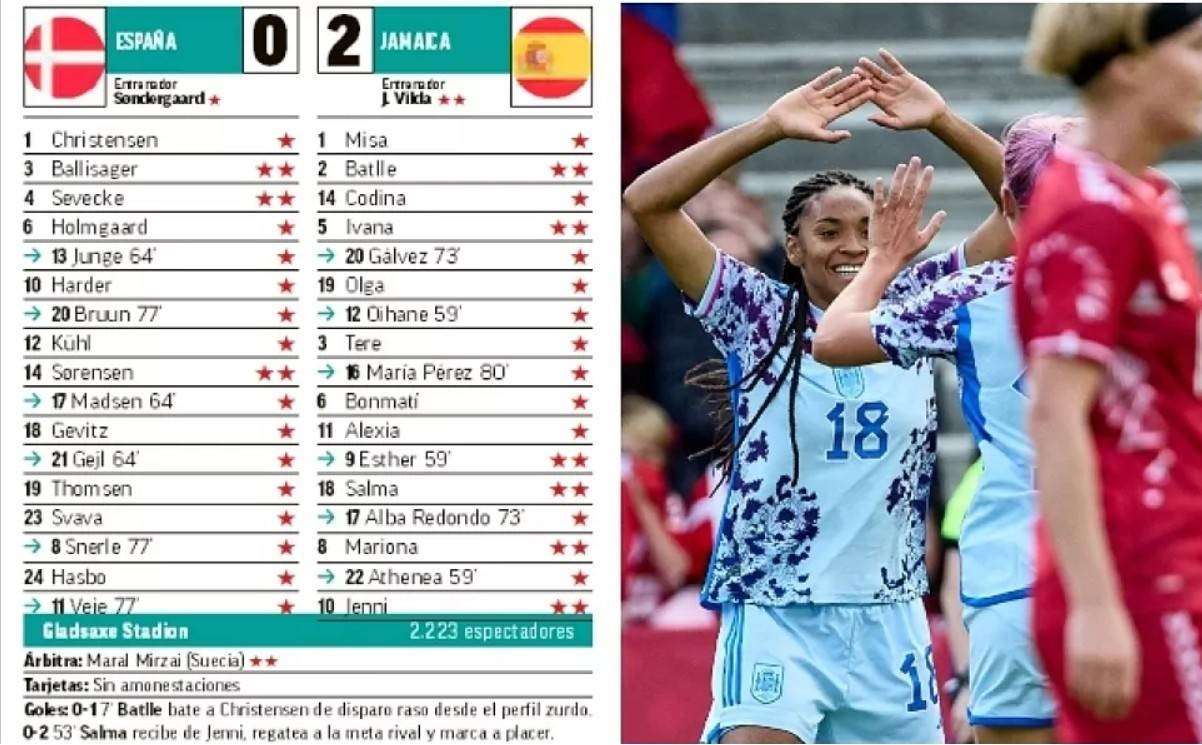 马卡报:西班牙女足过招丹麦阵容 很可能是世界杯首发11人