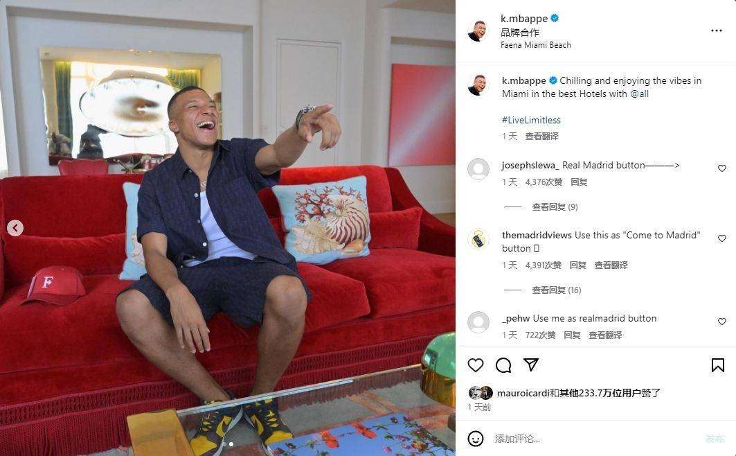 姆巴佩社媒晒照 皇马球迷评论区喊话:快到碗里来!