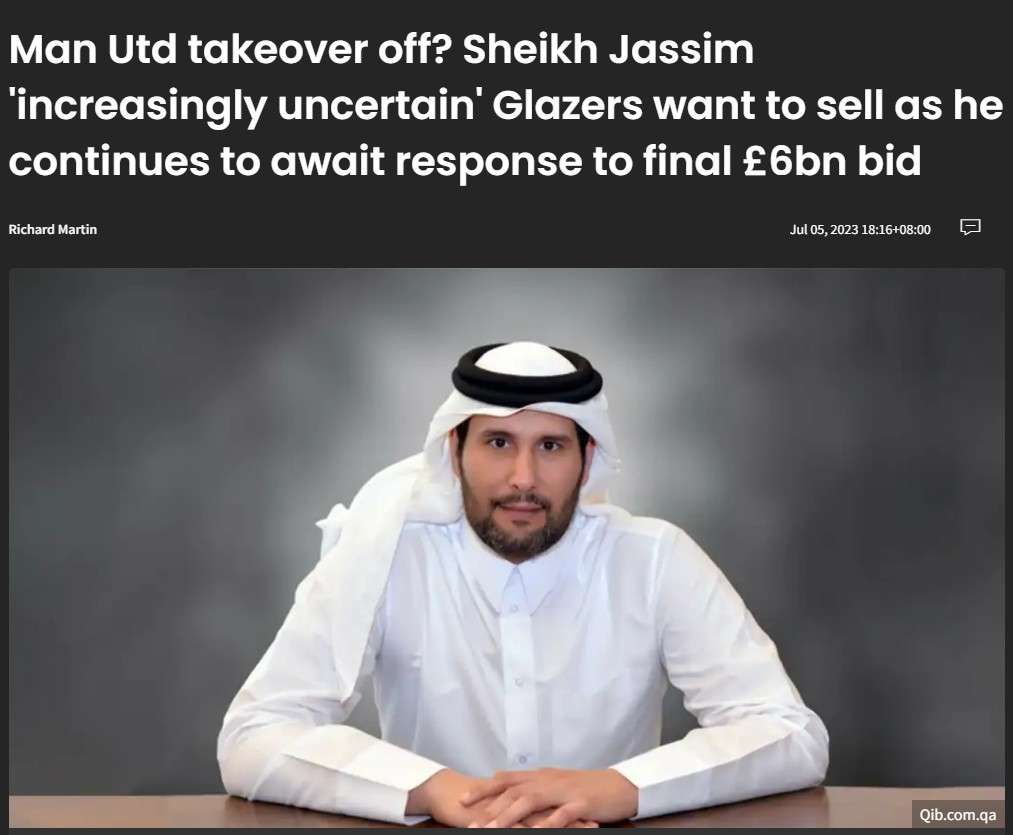 第五份报价未得到格雷泽家族回应 贾西姆怀疑他们根本不想出售曼联