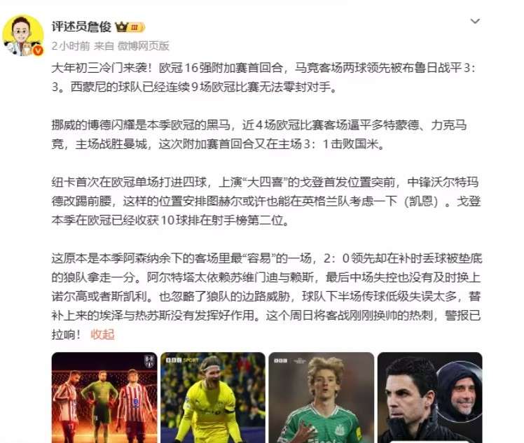 詹俊:博德闪耀再斩豪门 阿森纳2-0丢分德比警报拉响