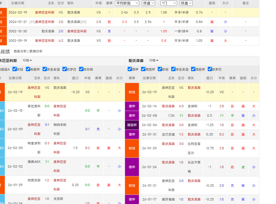 药厂一个月之前远征希腊0-2完败,当时是平手升平半,本场直接给到