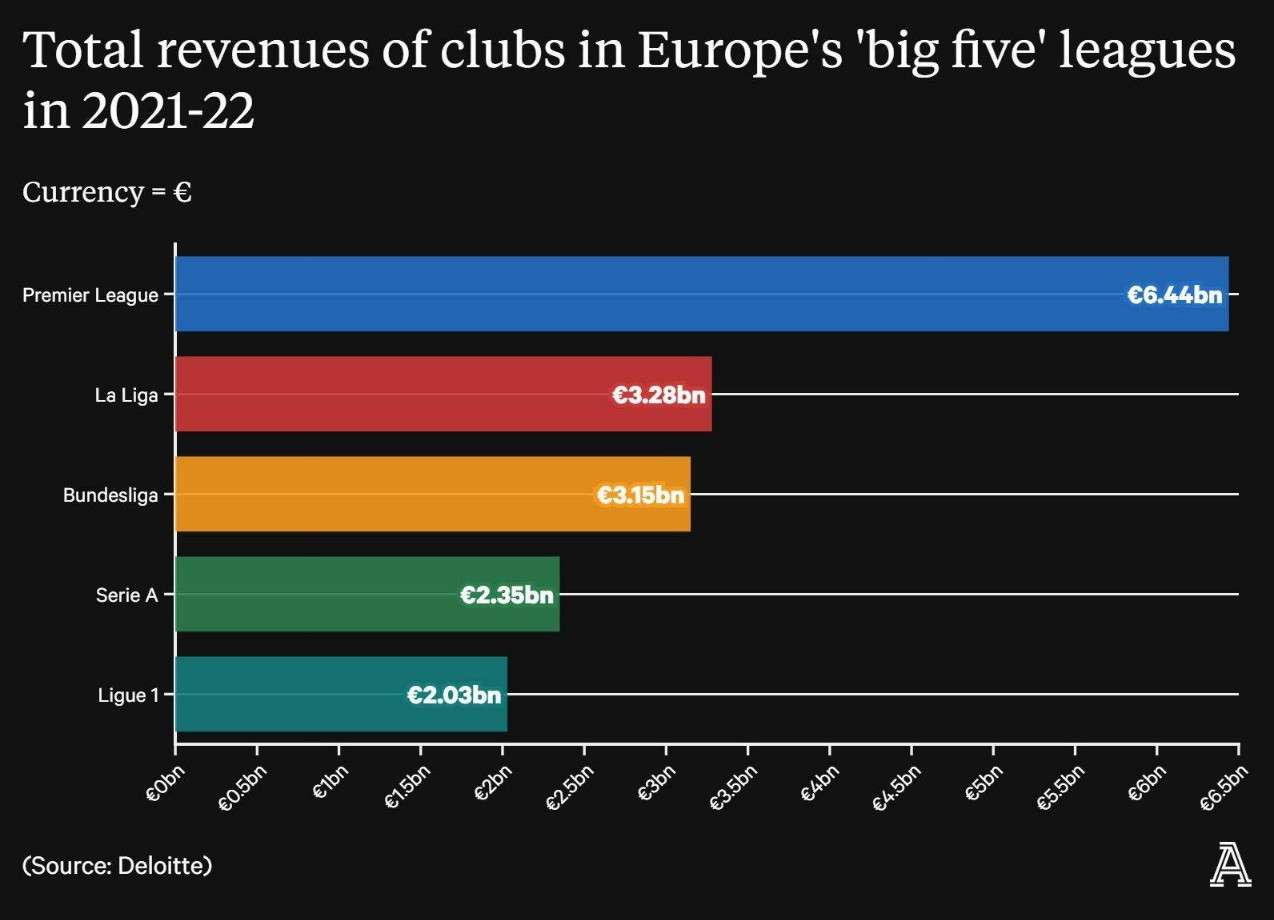 一财年总收入64亿欧元比西甲德甲总和还多
