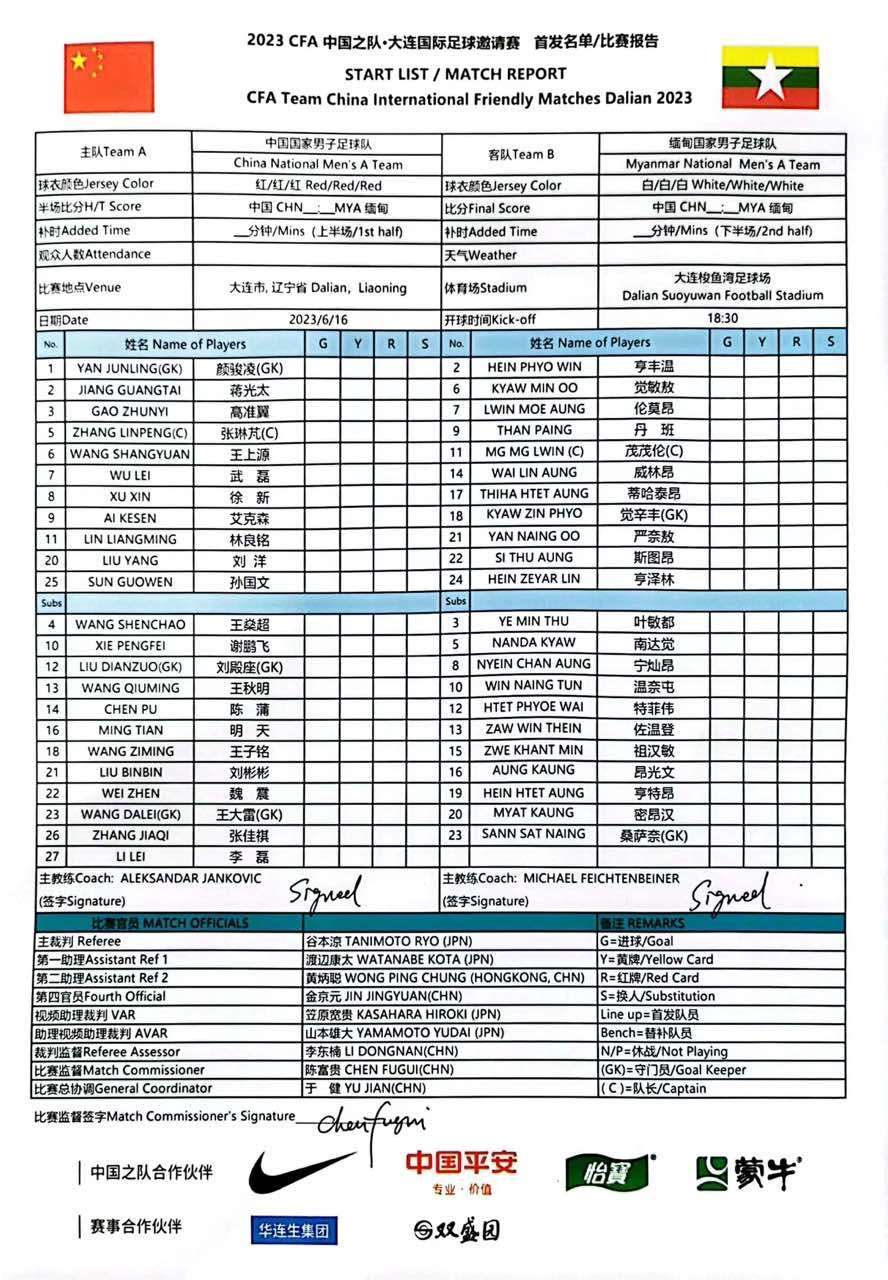 中缅之战首发:武磊、艾克森领衔 蒋光太先发出战