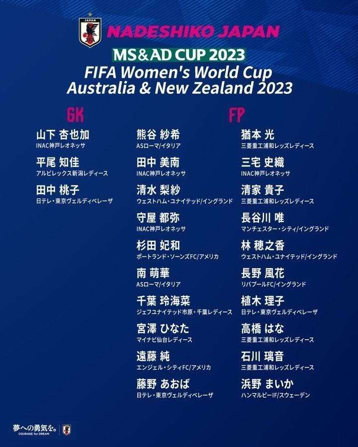 日本女足公布女足世界杯23人名单:9位留洋球员 长谷川唯 熊谷纱
