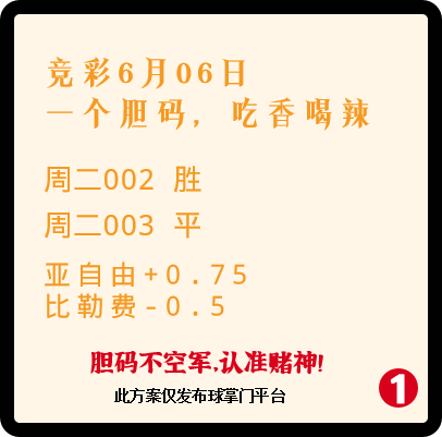 竞彩6月06日 一个胆码,吃香喝辣