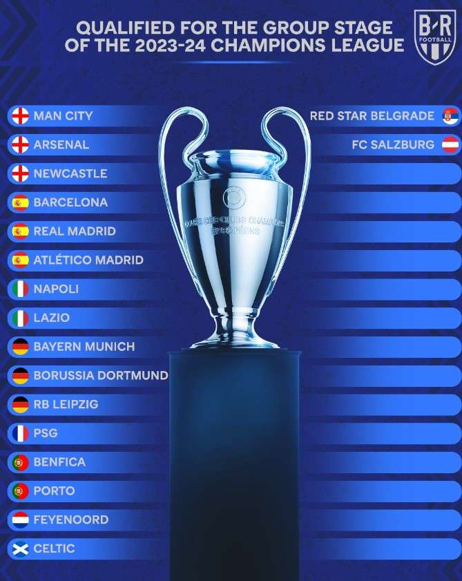 23/24赛季欧冠已诞生18个席位:纽卡斯尔终结21年苦等 拉齐