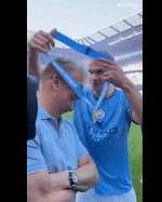 传承!哈兰德亲自为父亲带上英超冠军奖牌