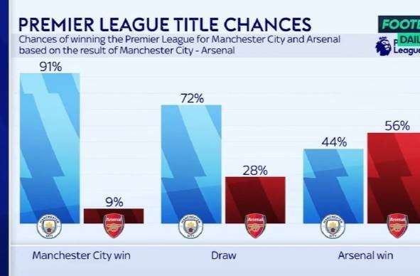天空体育:如果阿森纳本场失利 夺冠概率仅剩9%
