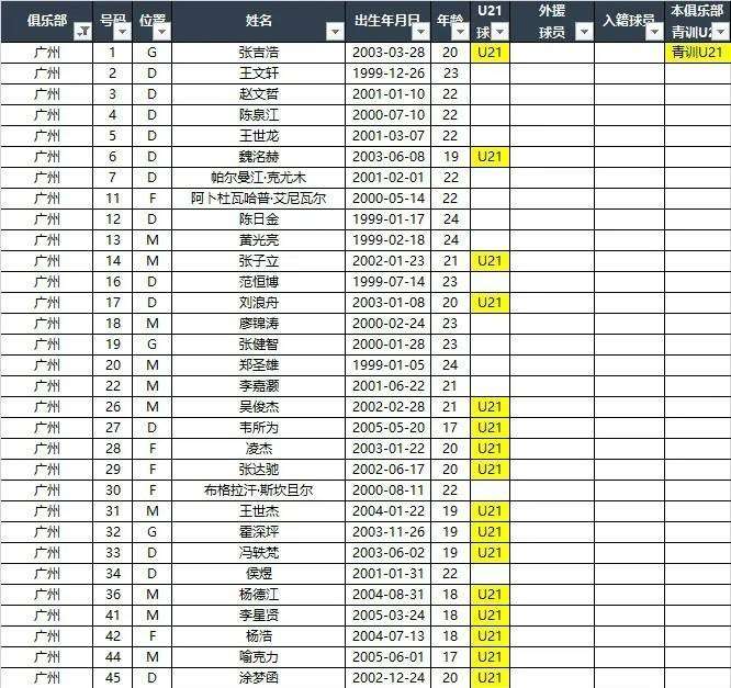 广州队新赛季中甲名单曝光:全华班+生面孔