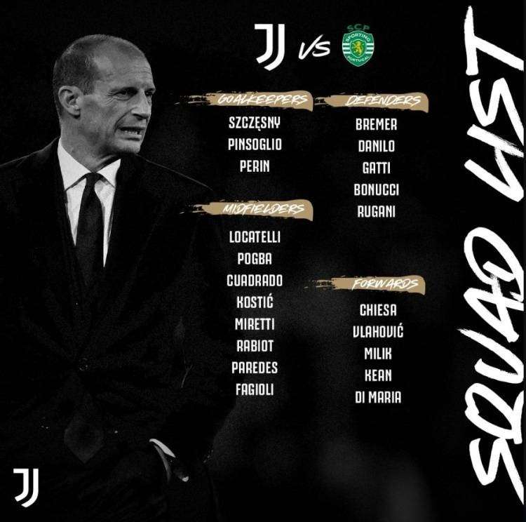 尤文公布战葡体首回合大名单:博格巴领衔 帕雷德斯在列