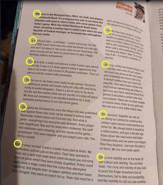 卢顿总监观赛指南留藏头暗号 嘲讽死敌“沃特福德烂透了”