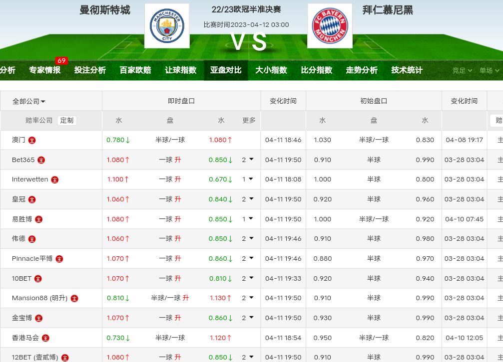 欧冠 曼城 VS 拜仁
