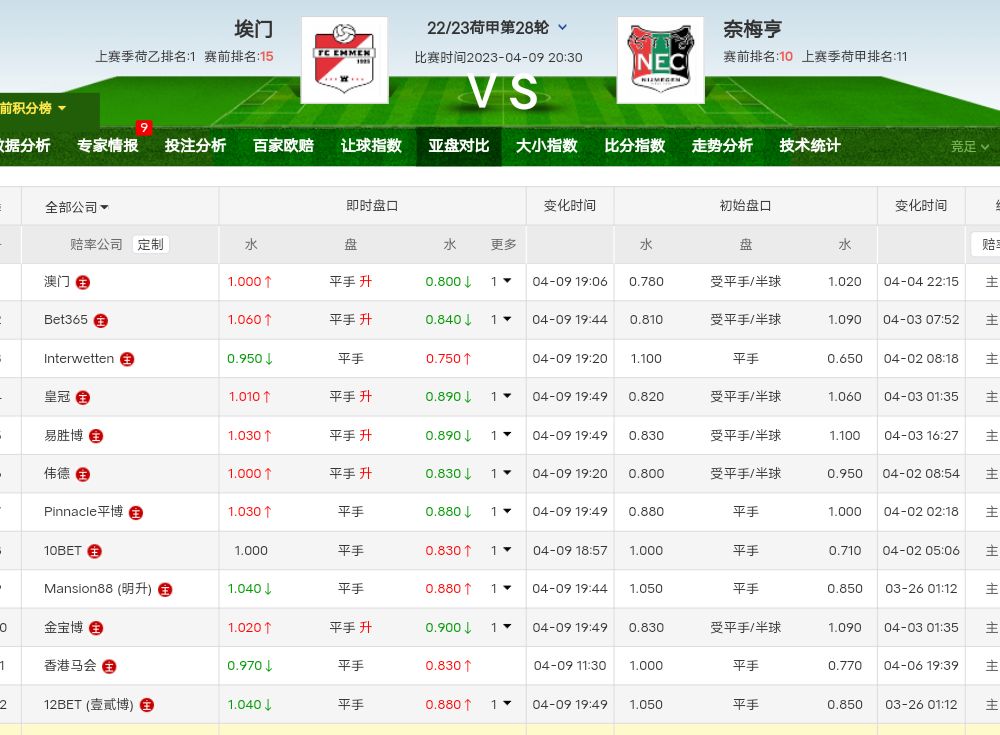 奈梅亨临场一个多小时降平手低水,这个操作是有利奈梅亨。